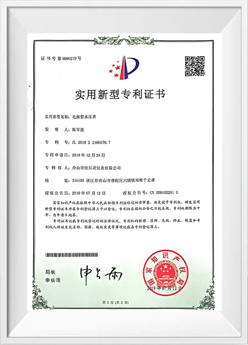 Zertifikat- Zhoushan Jiaerling Meter Co., Ltd.